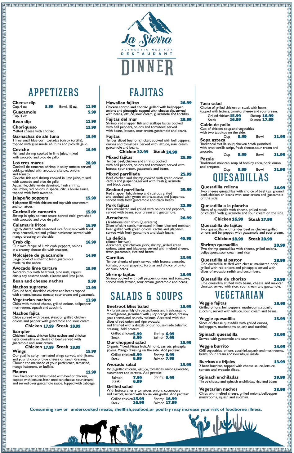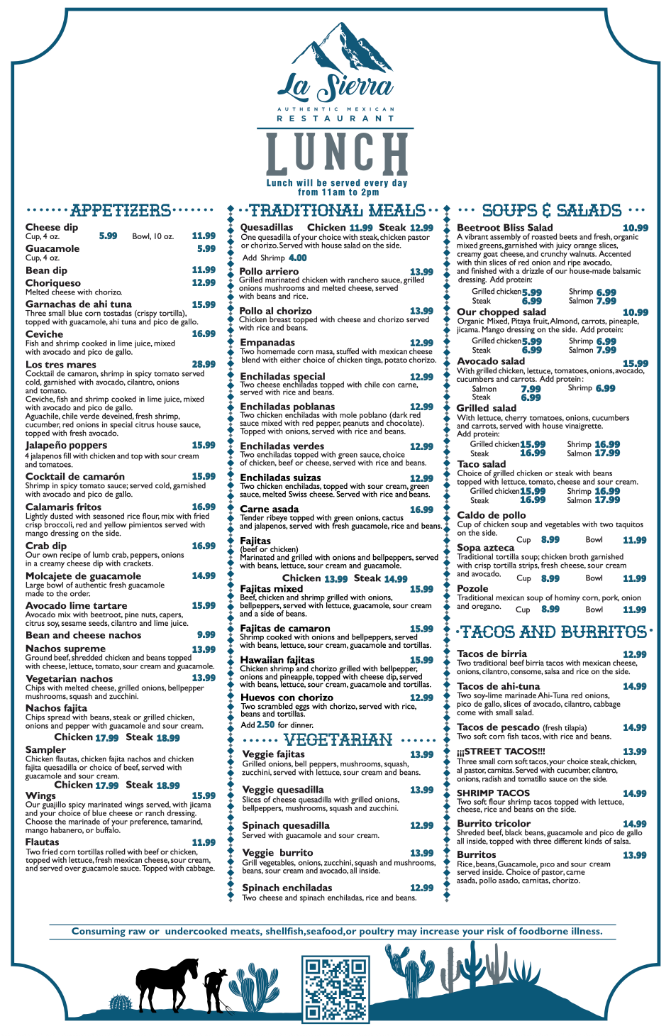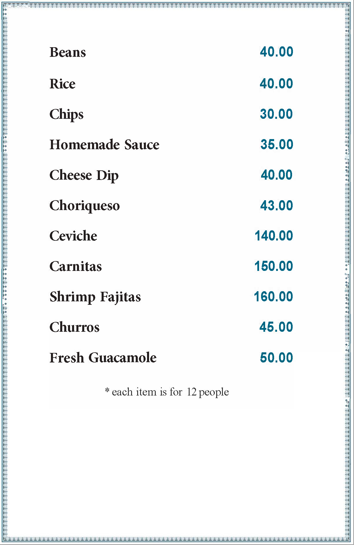 Cocktail de Camaron (Shrimp in spicy tomato served cold, garnished with avocado, cilantro onions and tomato. Ceviche (Fish and Shrimp) cooked in lime juice mixed with avocado and pico de gallo. Agua chile verde deveined fresh shrimp, cucumber red onions in special citrus house sauce, Topped with fresh avocado